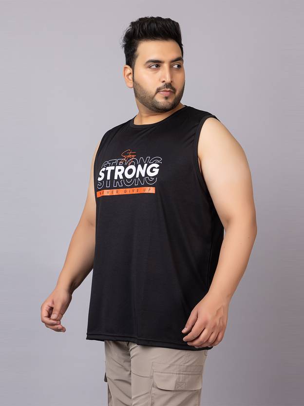 CHKOKKO Men Printed Round Neck Polyester Black T-Shirt