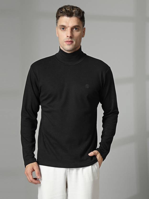 CHKOKKO Solid Men High Neck Black T-Shirt