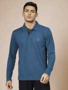 CHKOKKO Solid Men Polo Neck Dark Blue T-Shirt