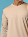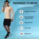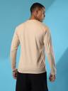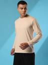 CHKOKKO Men Solid Round Neck Polyester Beige T-Shirt