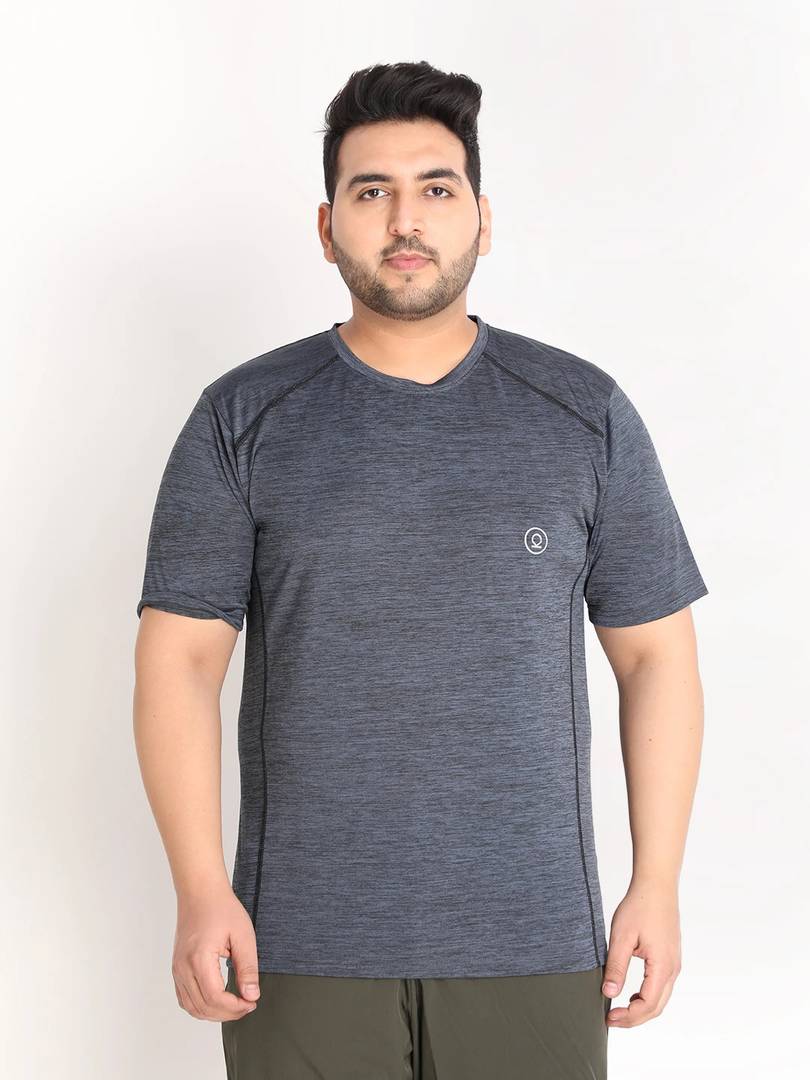 CHKOKKO Men Solid Round Neck Polyester Grey T-Shirt