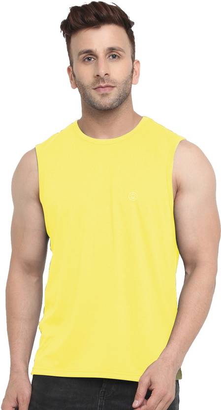CHKOKKO Solid Men Round Neck Yellow T-Shirt