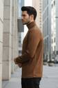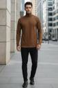 CHKOKKO Men Solid Turtle Neck Polycotton Brown T-Shirt