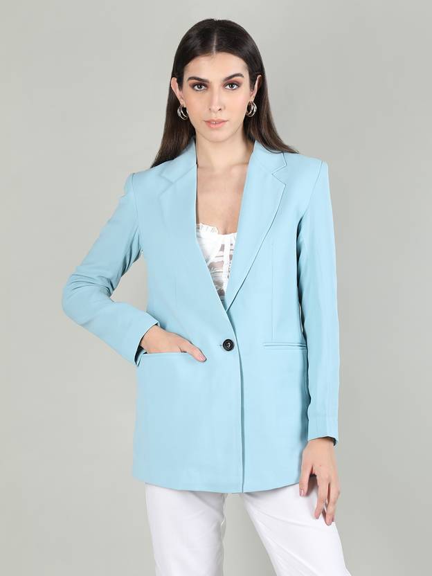 CHKOKKO Solid Single Breasted Formal Women Blazer (Light Blue)