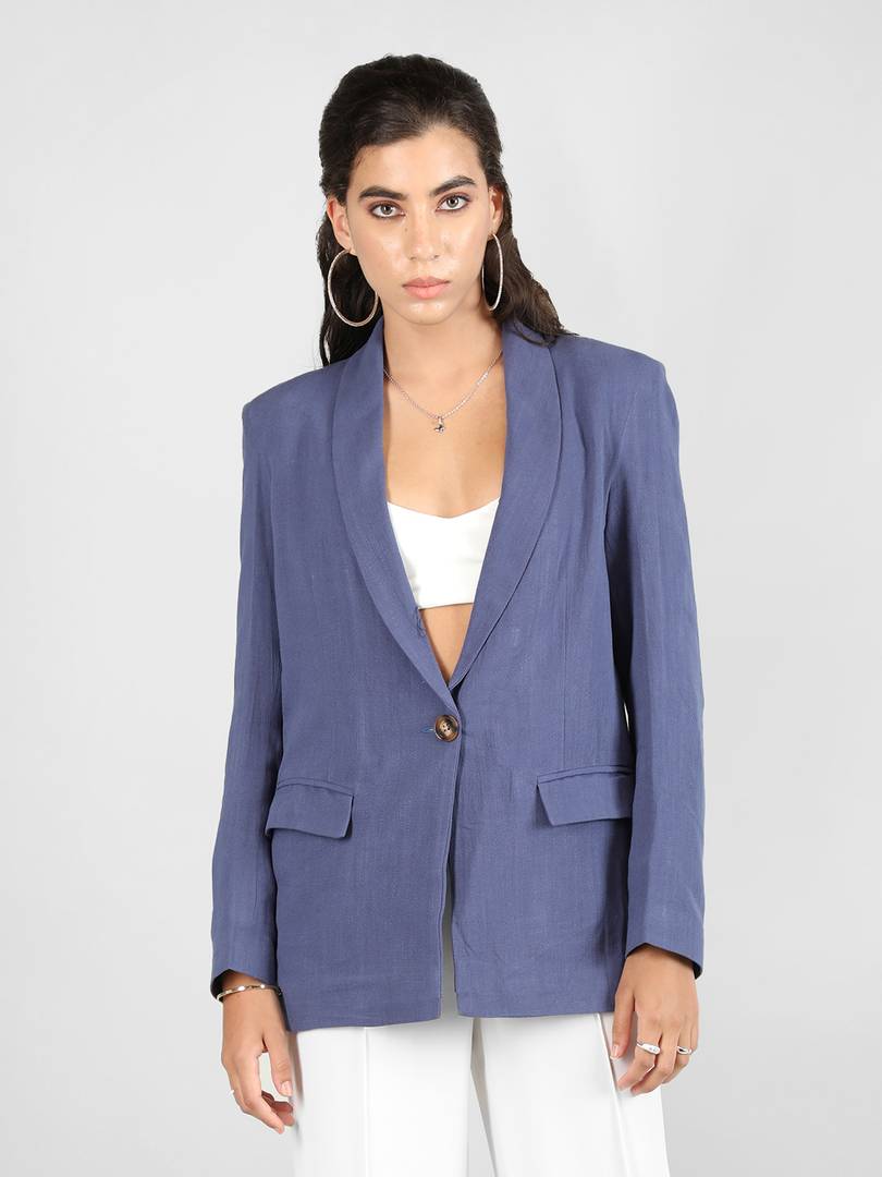 CHKOKKO Solid Single Breasted Formal Women Blazer (Blue)