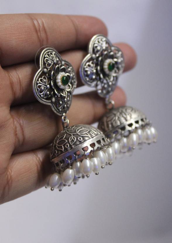 choice of youth COY FLORAL OXIDIZED SILVER RAPLICA JHUMKA Ruby Silver Jhumki Earring
