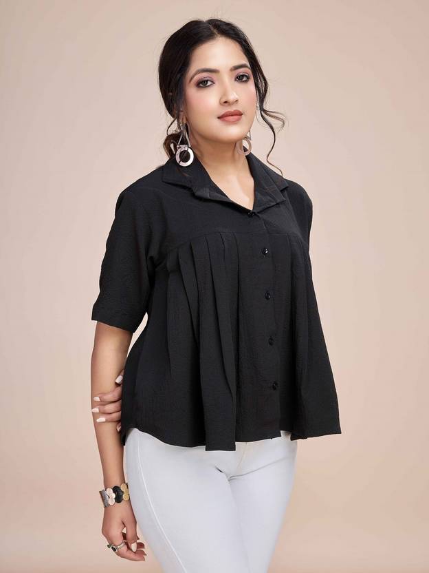 Women Regular Fit Solid Collar Casual Shirt Top