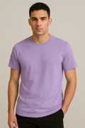 Men Solid Round Neck Pure Cotton Purple T-Shirt