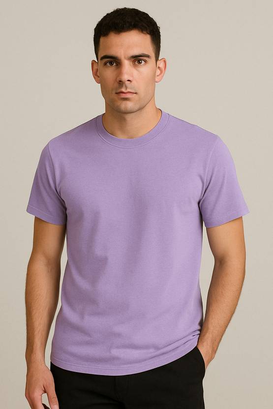 Choicexactly Solid Men Round Neck Purple T-Shirt