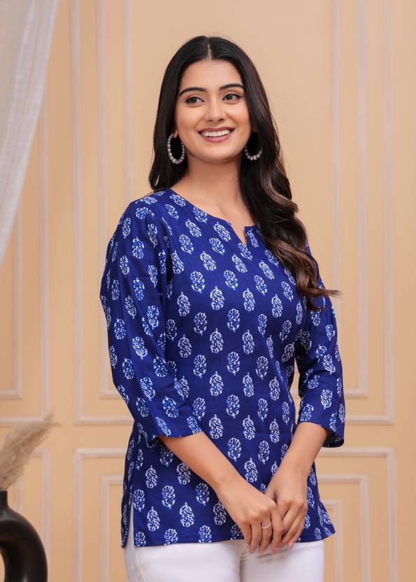 CHOISE GABBAA Women Floral Print Viscose Rayon A-line Kurta  (Blue)
