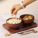 The Nakkashi Bowl is made of mango wood, making it ecologically friendly and easy to use. The natural finish and modern design are sure to compliment almost any home. This serving bowl is great for snacks, dry servings and salad.