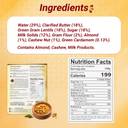 • INGREDIENTS Clarified Butter (23%), Milk Solids (20%), Gram Lentils (20%), Sugar (20%), Water (12.50%), Gram Flour, Almond, Cashew Nut, Green Cardamom Powder