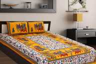 Chokor Cotton Double Flat Printed Bedsheet (Pack of 1, Yellow)