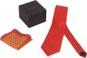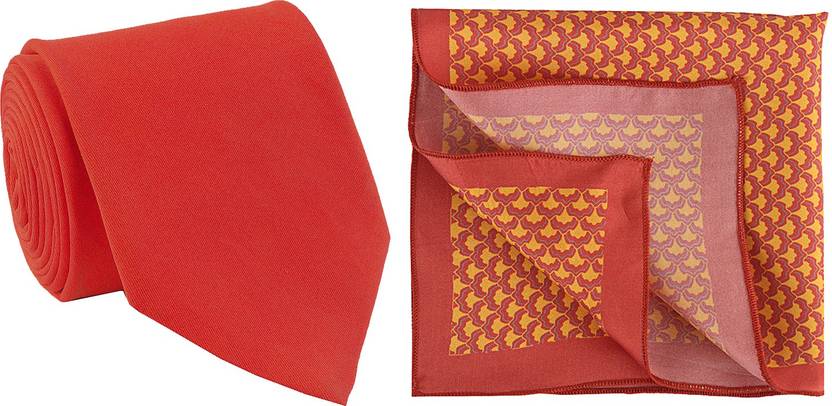 Rich, pure twill silk, solid tie. Paired with a red and orange printed twill silk pocket square, from the Indian at Heart line. For the complete look. Great with a Blue, Black or Grey Jacket. Suitable for formalwear, ethnicwear and occassions. Elegant packaging for gifting.