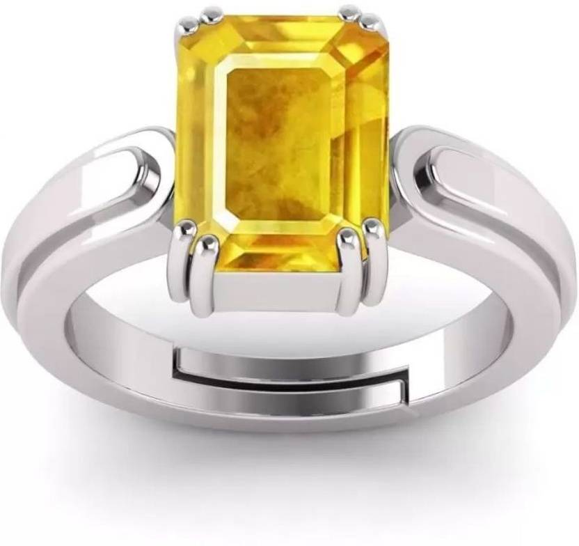 Chopra Gems Natural Yellow Sapphire Pukhraj Gemstone Stone Ring With Lab Certificate Brass Silver Plated Ring