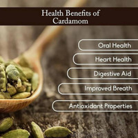 Featuring multiple health benefits, green cardamom is widely valued for its positive effects on oral health, heart health, digestion, and breath freshness. It is also known for its antioxidant properties that help the body combat free radicals. Additionally, many people chew the seeds to freshen their breath or use them as a digestive aid after meals. These versatile benefits make cardamom a useful addition to daily health and wellness routines.