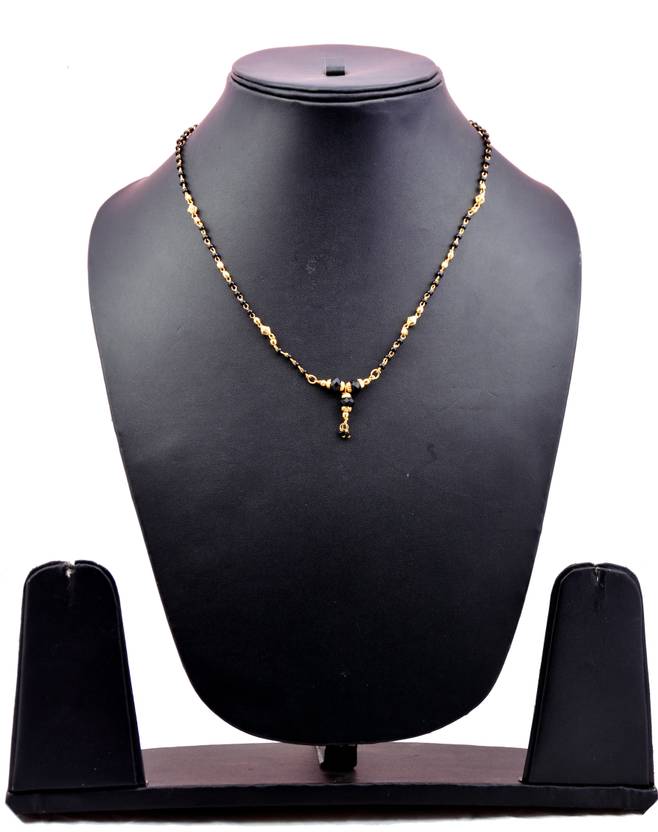 Chrishan gold plated mangalsuta with golden and black beads which you can wear on any occasion and team up with any outfit .