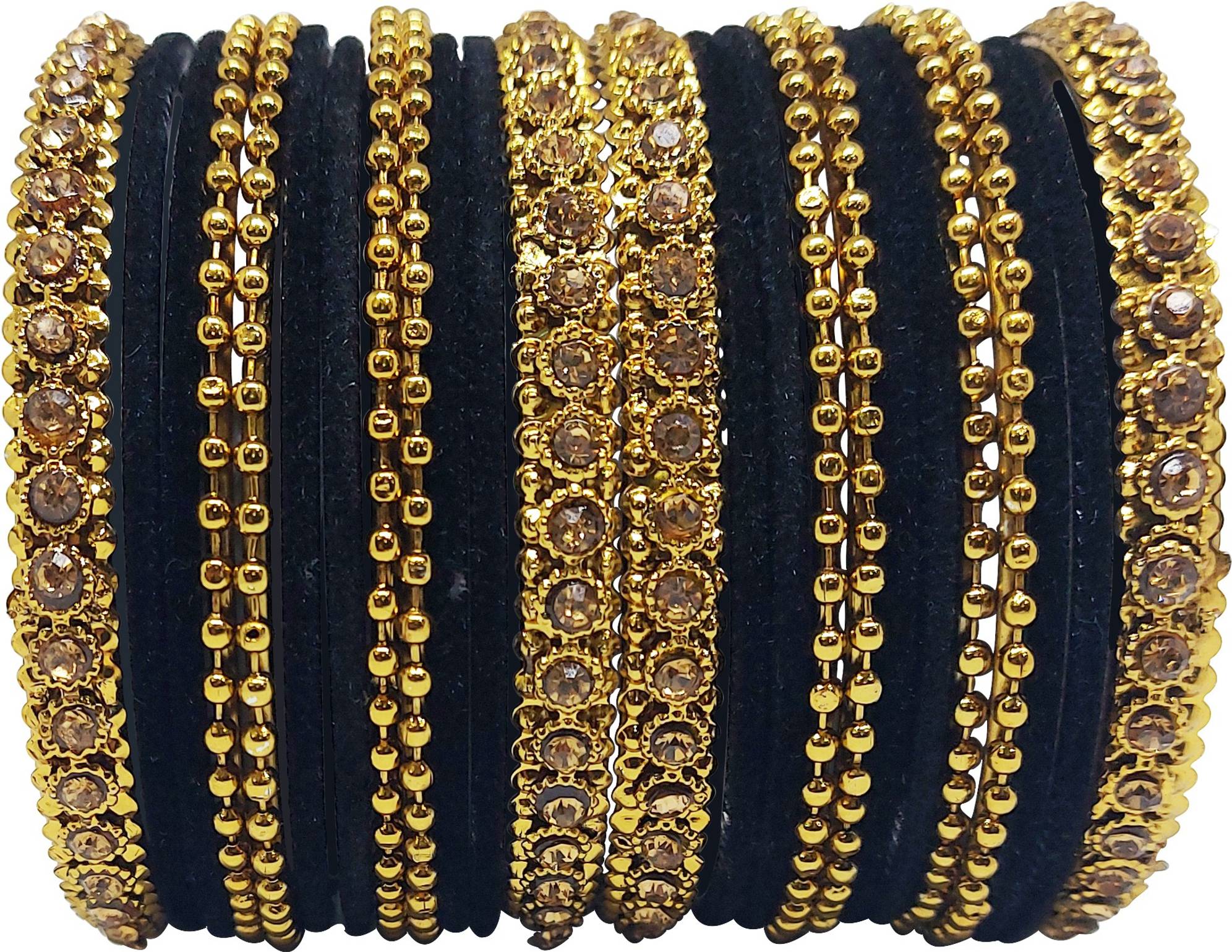 Chrishan traditional velvet kada chudi metal bangle set for women and girls in affordable pricing. This bangle set is a precious craft which is made up of good quality metal. Design of product looks more beautiful, gorgeous and attractive. Color of this product looks more appealing. You can wear this product on various festive, relegious and casual occasion and team up with any outfit like saree, kurti, gown and suit. It is skin friendly and comfortable to wear. Good quality kada attach to the bangles which makes it more beautiful. Colour of the product may vary due to moniter and lighting setting. It is recommended to store your jewellery product in air tight box and clean it with dry cloth, avoid the contact of water, perfume and other chemical to jewellery.