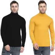 Christone Solid Men Turtle Neck Black, Grey T-Shirt