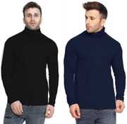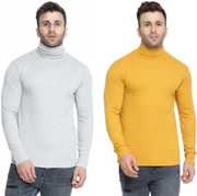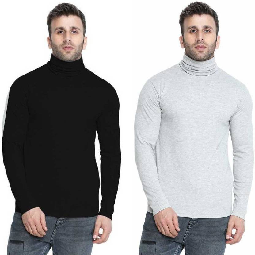 Christone Solid Men Turtle Neck Black, Grey T-Shirt