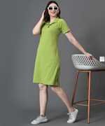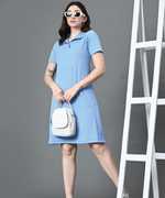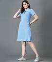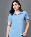 Christy World Solid Women Polo Neck Light Blue T-Shirt