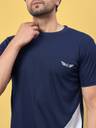 CHROME & CORAL Men Navy Blue Colorblock Polyester Nightsuit Set