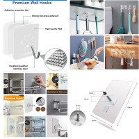 These wall hooks are built to withstand the challenges of moisture and humidity. Crafted with a waterproof design, they excel in environments prone to water exposure, such as bathrooms, kitchens, or outdoor areas. Whether faced with splashes, spills, or steam, these hooks remain impervious to water damage, ensuring long-lasting durability and reliable performance under any conditions.