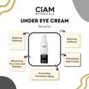 An unique combination of Ciam Botanicals Under Eye Cream help reduces dark circles, Puffiness and improves Finelines. Niacinamide in Ciam Botanicals Under Eye Cream helps to improve the skin's barrier function, which leads to better hydration.