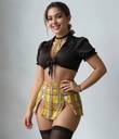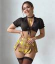 1 Crop Top, 1 Skirt, 1 G-String, 1 Pair of stockings