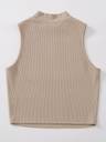 Casual Sleeveless Solid Women Beige Top