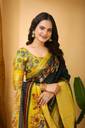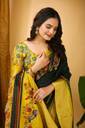 Kalamkari print saree with Jacquard kanjivaram zari border & pallu with printed blouse