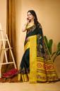 Printed Kalamkari Cotton Silk Saree (Dark Green)
