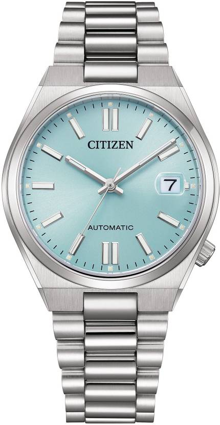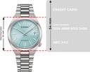The CITIZEN TSUYOSA NJ0200-50L features a refreshing Ice Blue dial, offering a vibrant yet calming aesthetic perfect for everyday wear. This 37mm timepiece blends timeless design with modern functionality, boasting a stainless steel case, sapphire glass, and luminous hands and indices for readability. Powered by the Caliber 8210 automatic movement, it offers a 42-hour power reserve and is water-resistant to 5 BAR, making it both stylish and practical. With its sleek silhouette, chamfered case, and comfortable bracelet, the NJ0200-50L is an ideal choice for those seeking an elegant, versatile watch thats built to last.