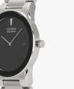 Axiom's refined yet sleek design offers a day-to-night fashion options for the avid trendsetter. Available in men's and ladies', featuring a stainless steel case and bracelet with a black dial and the intriguing feature of edge-to-edge glass and date. Featuring our Eco-Drive technology powered by light, any light. Never needs a battery. Caliber number J165.Eco-Drive technology powered by light, any light. No need to change battery