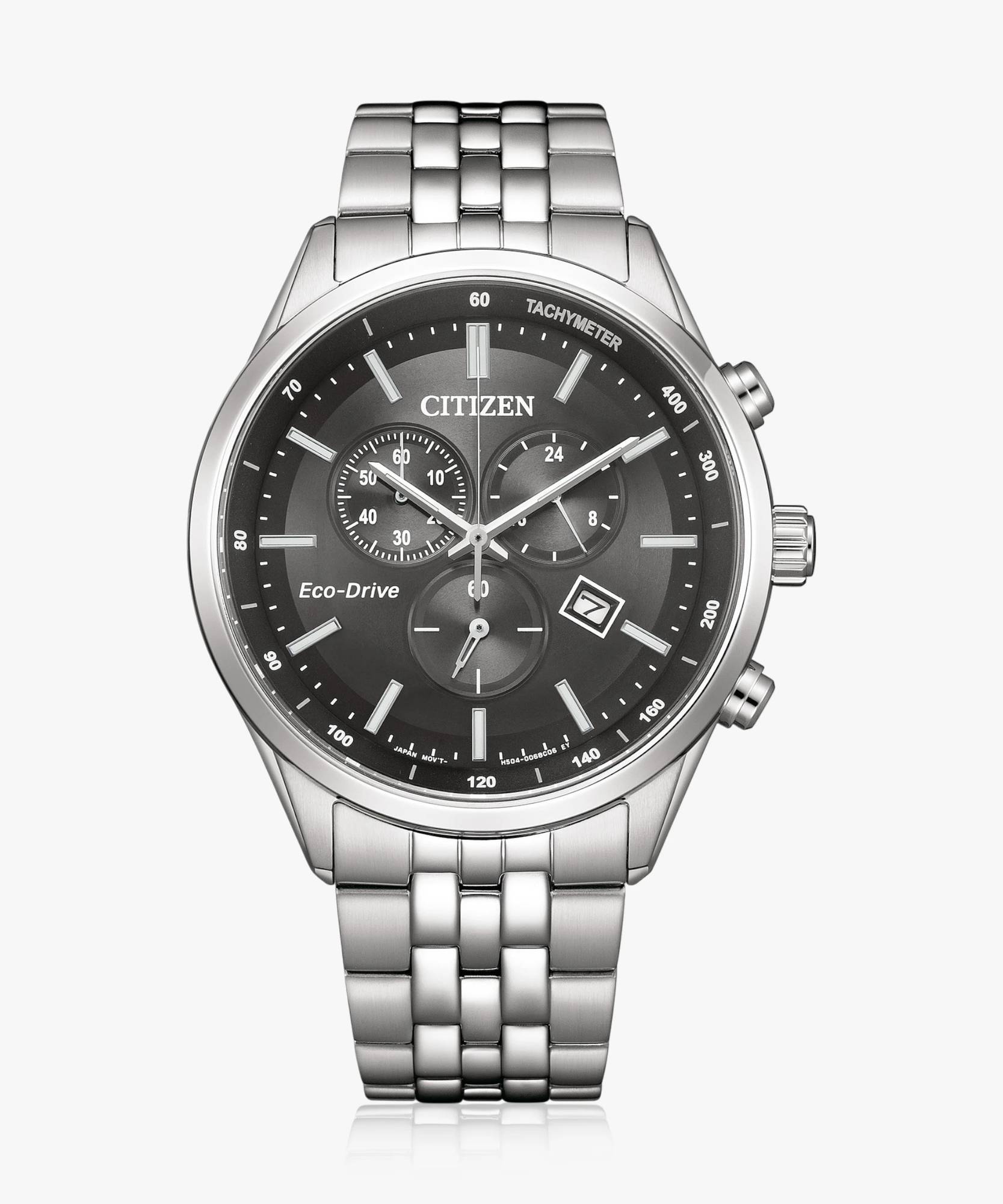 The new CITIZEN Eco-Drive Chronograph exudes modern sophistication with its sleek, masculine design. Crafted from robust stainless steel, this timepiece features a striking black dial complemented by silver-tone accents, creating a bold yet refined look. The chronograph functionality is seamlessly integrated, offering precision timing with three sub-dials that add both aesthetic appeal and practical utility. The 42 mm case size is substantial yet comfortable, making it ideal for those who appreciate both form and function. Powered by Citizen's renowned Eco-Drive technology, this chronograph never requires a battery change, drawing energy from any light source to keep you on time, all the time. With water resistance up to 100 meters, it is versatile enough for daily wear, whether you're in the office, at the gym, or enjoying outdoor adventures. The sapphire glass provides superior durability and scratch resistance, ensuring that the watch remains as pristine as the day you first wear it. This timepiece is the perfect companion for the modern man who demands reliability and style in equal measure.