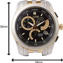 Sporting three sub-dials for a variety of additional functions, this extremely sophisticated timepiece from Citizen has the ability to accurately track, measure and display the respective readings of the time, date, day and the month, with the additional 24-hour time display. To further this watch’s multi-functionality is the availability of an alarm and calendar function. The watch’s sturdy construction which includes the dial’s stainless steel case along with a durable clear glass cover gives it a water resistant capability of up to 100 m.