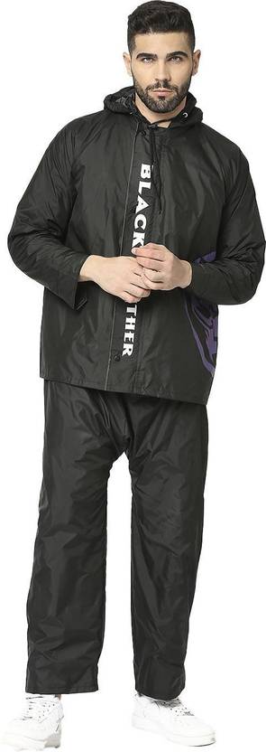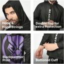 This raincoat set boasts a hood with adjustable hood strings, allowing you to customise your coverage to shield your head and face from rain and wind. The double flap design provides enhanced protection against water infiltration, ensuring you stay dry even in challenging weather conditions. The Black Panther print adds a touch of style and individuality to your outdoor ensemble. Lastly, the buttoned cuff ensures a secure fit and prevents water from entering the sleeves.