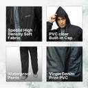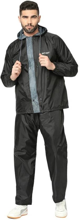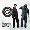 Introducing the Citizen Reversible Rainsuit - the ultimate solution for your rainy-day needs! Stay dry and comfortable in rainy seasons with real-reversible raincoat for men. This durable polyester+PVC material rain suit comes with a hooded raincoat with waterproof pants, plastic cap to protect your head from the rain and a color-matching carry pouch to store & carry the entire suit when not in use. Be prepared for any sudden downpour or drizzle with a fashionable look. It comes with a sleek solid color design that's perfect for any outfit. - Citizen's reversible rain suit for men is extremely practical and incredibly versatile. Have the combo of the best overall rain protection from showers and drizzling. - Comes with a reversible waterproof raincoat with pants, plastic cap, and a color-matching carry pouch making it a perfect rain set to protect your favorite outfits in rainy seasons. - Made with durable polyester fabric on the outside and PVC fabric from the inside, this ensures leak proof and anti-fog, giving you the best comfort. Large pockets to keep your mobile phone safe from the coming rains. - Stylish Denim print pattern that gives you a cool and elegant look. The reversible design allows you to instantly switch up your look, giving you two styles in one. The design features solid colors that don't fade over time. - Equipped with quality zippers and a sealed design that prevents water leakage & keeps your entire body dry and protected from being wet and mushy all day. - This lightweight and portable waterproof rain gear is perfect for daily work, office goer, bike riding, cycling, running, fishing, hiking, camping, construction work, agriculture, etc. - Don't wash the rain suit with any chemicals. Keep the suit dry and avoid any ironing and steaming. Just wipe it with a wet cloth and it will be just as new.
