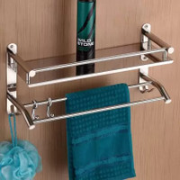 Stainless steel is known for its outstanding durability. This bathroom shelf will last longer than other materials, making it a good investment. This towel rod-equipped double-layer shelf made of stainless steel has a sleek, contemporary appearance that may go with various bathroom decor schemes. It gives your bathroom a neat and polished appearance.