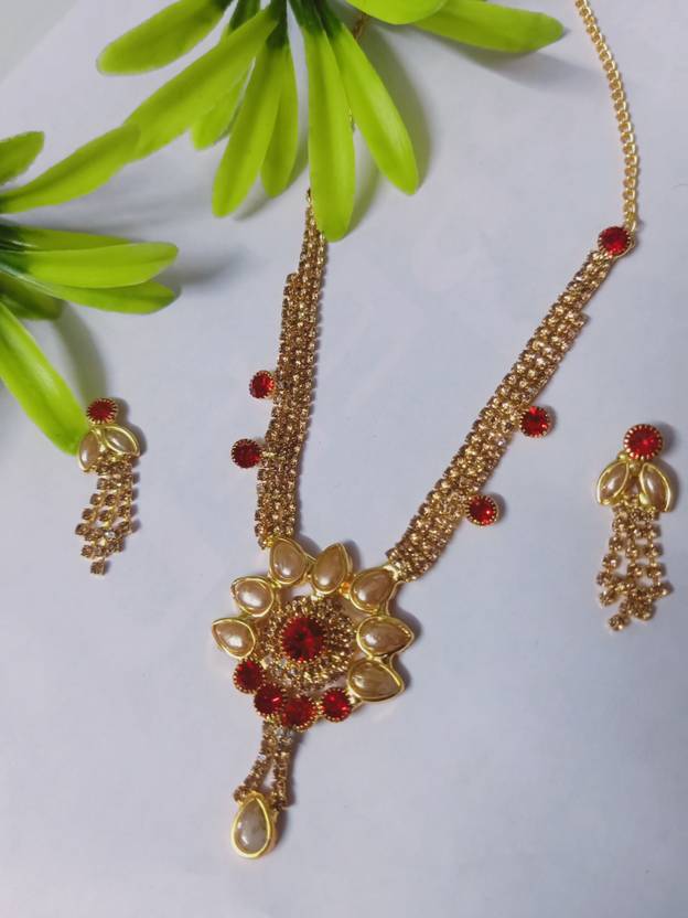 Metal Gold-plated Gold, White, Red Jewel Set (Pack of 1)