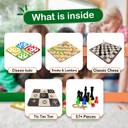 Clapjoy Wooden 4in1 for Kids & Adults|Ludo & Chess|Snake Ladder & Tic Tac Toe Party & Fun Board Game