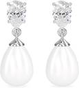 CLARA Pear Pearl, Cubic Zirconia Sterling Silver Drops & Danglers