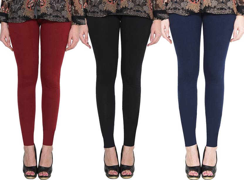 Premium Cotton Lycra Ankle Length Leggings For Women/Girls/Ladies Combo Pack of 3 (Maroon, Black & Navy Blue)