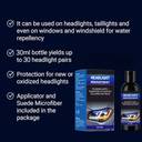 Showroom-Quality Clarity: Revives headlights to their original brilliance., Advanced Oxidation Removal: Eliminates yellowing, haze, and fine scratches effortlessly., Professional-Grade DIY Kit: Achieve flawless results at home without special tools., UV & Oxidation Protection: Long-lasting coating preserves clarity and shine., Enhanced Night Visibility: Improves headlight brightness for safer, confident driving.
