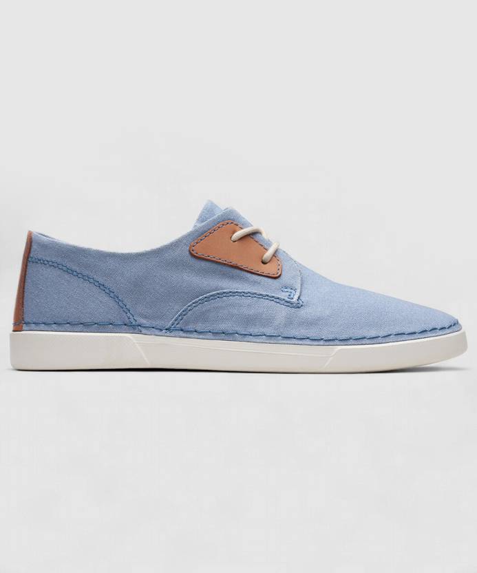 Clarks Gereld Tie Blue Textile Canvas Shoes For Men (Blue , 7)