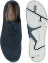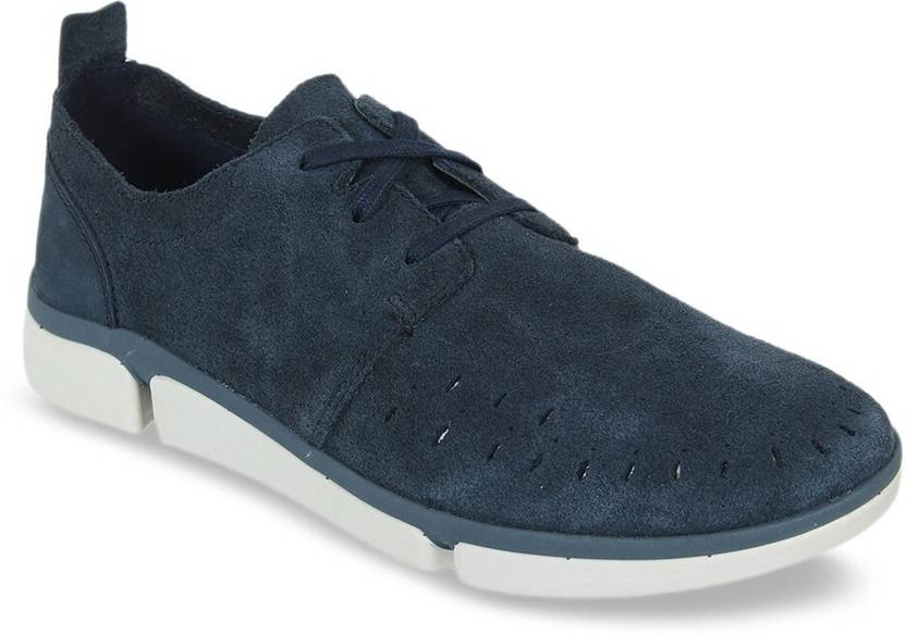 A pair of round-toe navy blue sneakers, has regular styling, lace-up detailSuede upper with cut-outsCushioned footbedTextured and patterned outsole Express yourself with some new and trendy Clarks casual shoes. Keep it casual for your date by matching this navy blue pair with trim denims and a classic leather jacket.