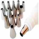 Great Addition to Your Bakeware Collection Decorate your baked preparations with ease using the Cakeware 12 piece cake decorating set. This set includes 12 pieces that will make a great addition to your bakeware collection. Be it cupcakes, pastries or desserts, this decorating set is sure to come handy at all times. It also includes one coupler that lets you keep the icing tips in place. Whether you are a beginner or an experienced baking enthusiast, this reusable icing piping bag is just what you need to add appealing designs to your cakes and desserts. Easy to Use and Maintain Cake Decorating Set This icing piping bag with steel nozzles let you create beautiful and attractive toppings for your delicious cakes and desserts with utmost ease. The plastic coupler and metal decorating nozzles allow you to experiment with different designs. It is made of good-quality stainless steel and plastic and is sure to last for long. This cake decorating set can be washed and reused as and when required.