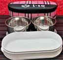 A:2 stainless one plastic tray and one bag(Cover)