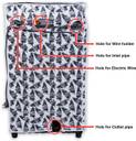 Owing to its convenient holes for a wire holder, inlet pipe, electric wire, and outlet pipe, this cover lets you connect your washing machine without any hassles.