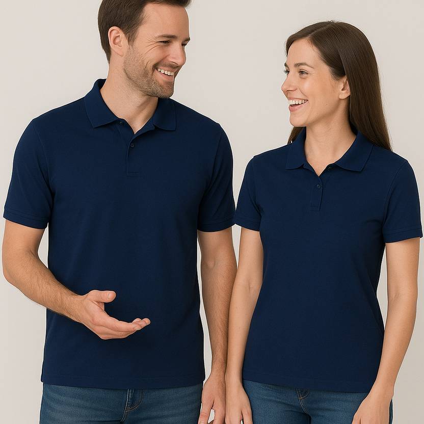 ClassiCove Solid Couple Polo Neck Navy Blue T-Shirt